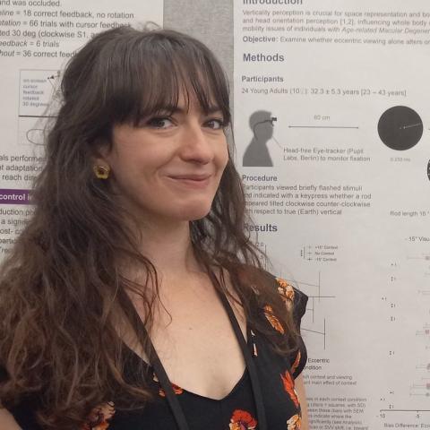 Dr. Catherine Agathos, a Postdoctoral Fellow in the Eye/Head Movement Lab won a Best Poster Award in Basic Science for Postdoctoral Fellow from the International Society of Posture & Gait Research at the 2022 World Congress in Montreal, Canada. Her poster “Eccentric Viewing Shifts Subjective Visual Vertical Perception”, examined the effect of eccentric eye position – as is common in those with central visual field loss due to macular degeneration – on the perception of earth-vertical and marks her first presentation of her research at SKERI at an in-person conference.